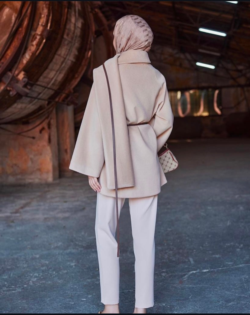 لإطلالة تجمع بين البساطة والفخامة، معطف الستايل الناعم لازم يكون خيارك الأول! قصّة أنيقة مع خامة دافئة ناعمة وخفيفة، وحزام يضيف لمسة أنثوية رائعة. مثالي لأيام الشتاء الباردة وطلعاتك الخاصة. لا تفوتيه!