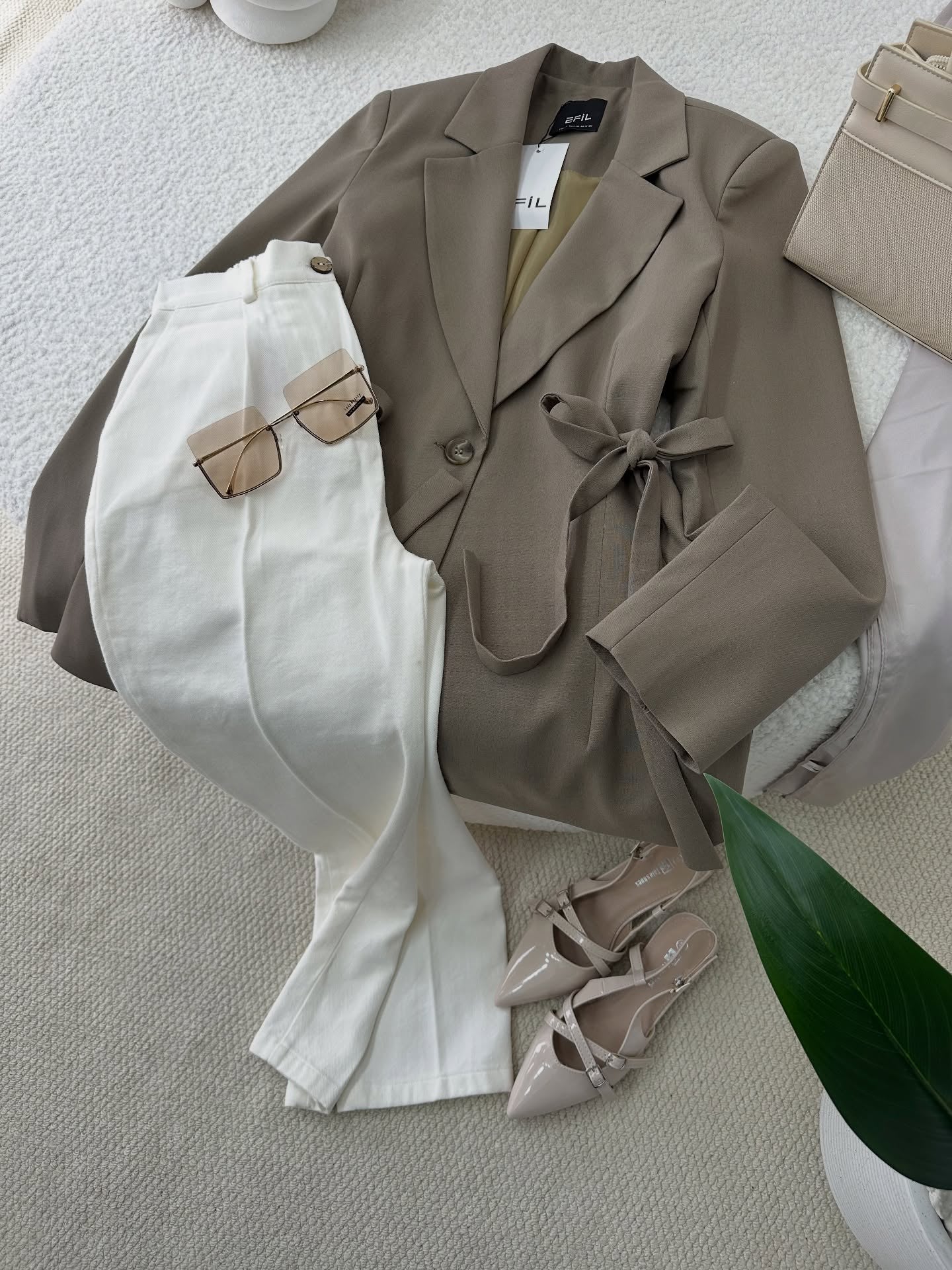 بشكل عام هو جاكيت رسمي عصري بلمسة ناعمة وأنيقة، سهل التنسيق مع الأبيض والبيج والألوان الترابية.